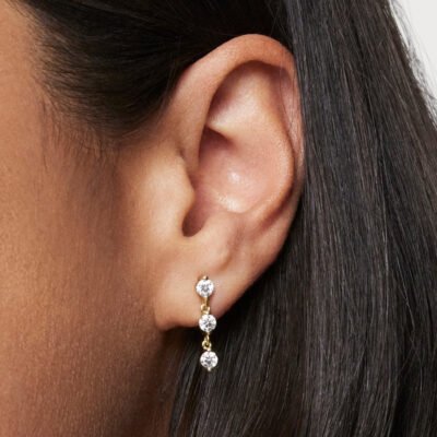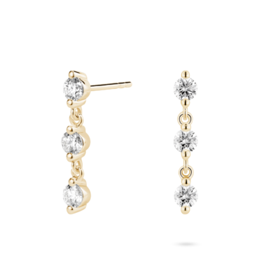 Maximize sparkle within your ear stack with our new line drop earrings. Suitable for both day or evening wear they will be a great addition to your collection. Each 0.15 carat stone is graded at VS+ clarity, Very Good cut, Near Colorless and grown from 100% renewable energy.